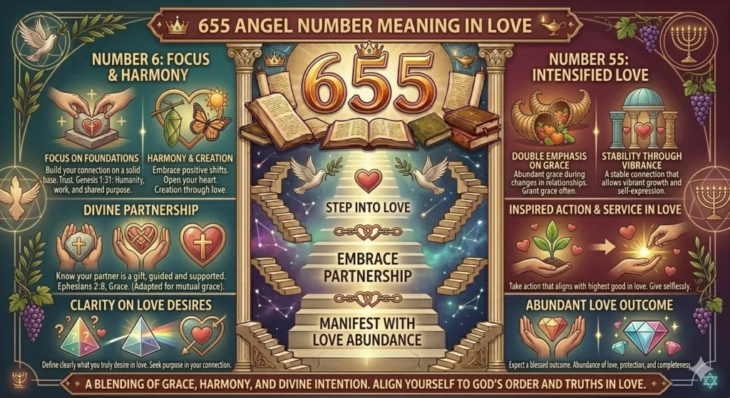 For singles, 655 angel number suggests that someone new could enter your life after you release past wounds. You’re stepping into a phase where emotional clarity attracts deeper, more aligned connections.