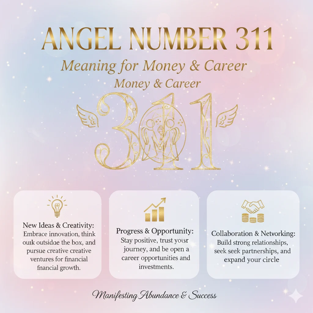 In finances and career, angel number 311 symbolizes creativity, opportunity, and the courage to start something new. If you’ve been thinking about switching jobs, launching a passion project, or expanding your skills — this is your green light.